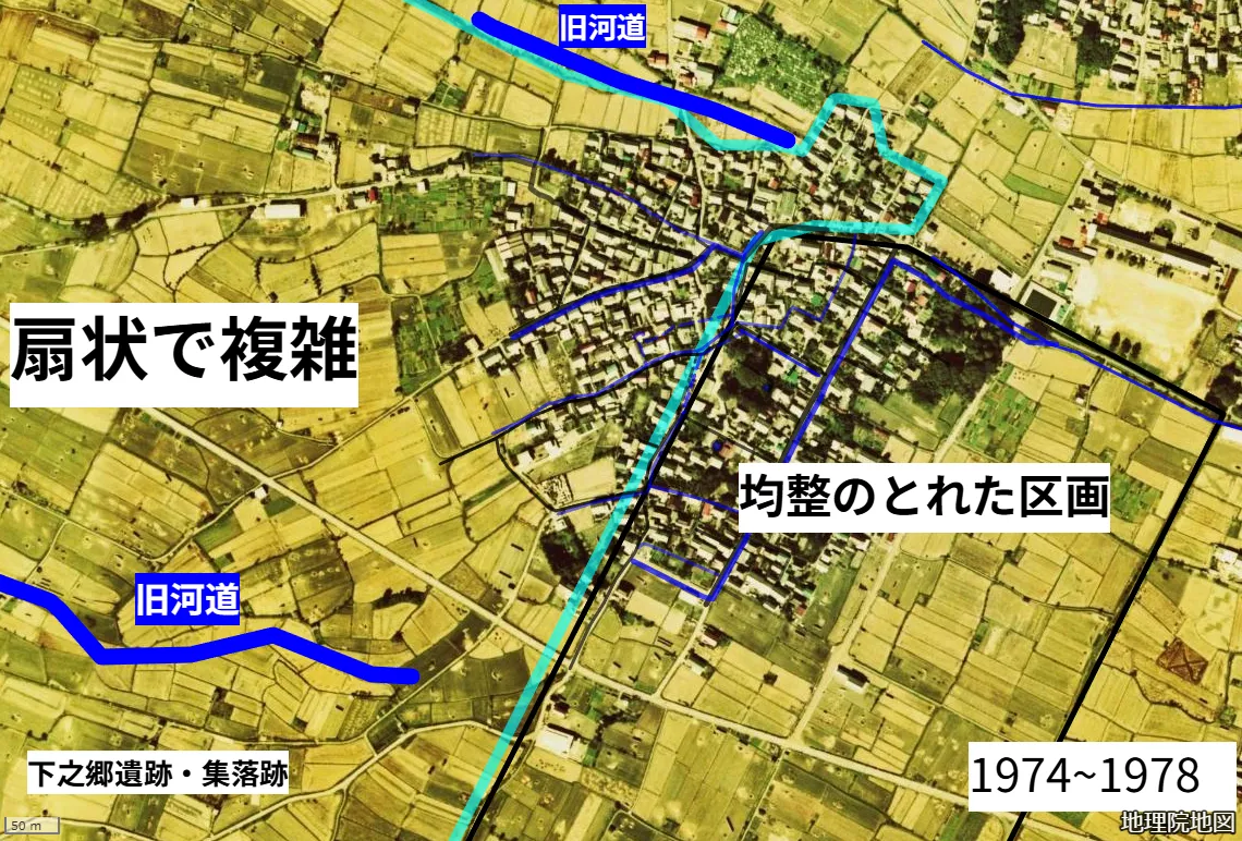 本稿では旧河道について既に触れたきた。下之郷ではどうだろうか。