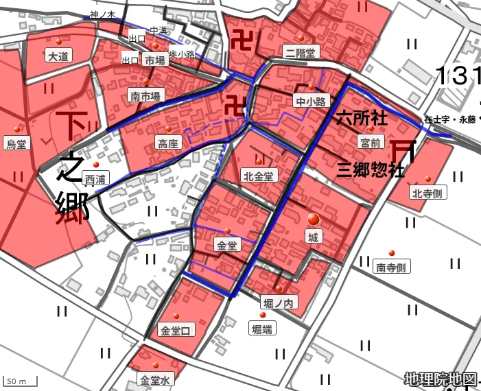甲良に於いて 「市場」 の字を持つのは下之郷において他なく、 古代寺院に附随する市が自ずと地域の中心となりうる、 庄内に於いて規模のある市が開かれていた可能性13はあるだろう。
